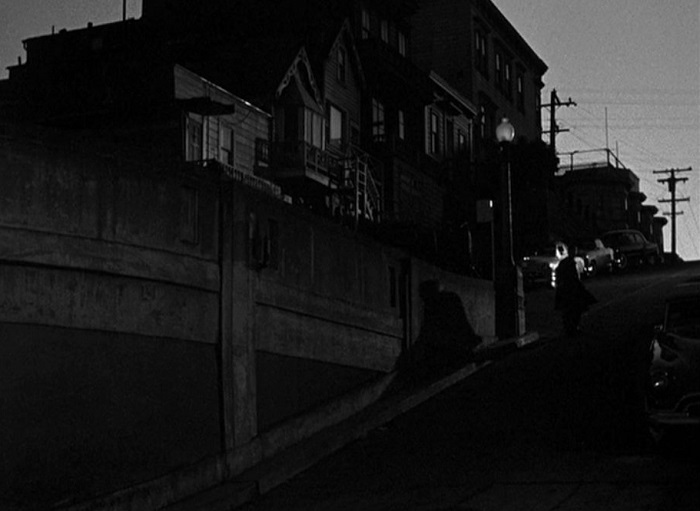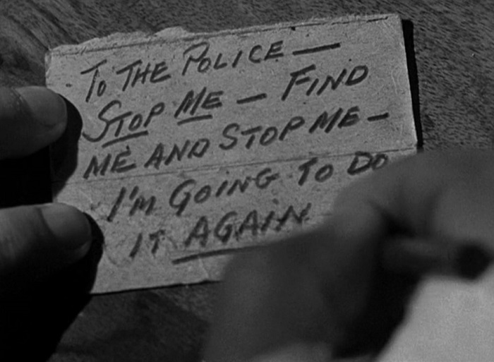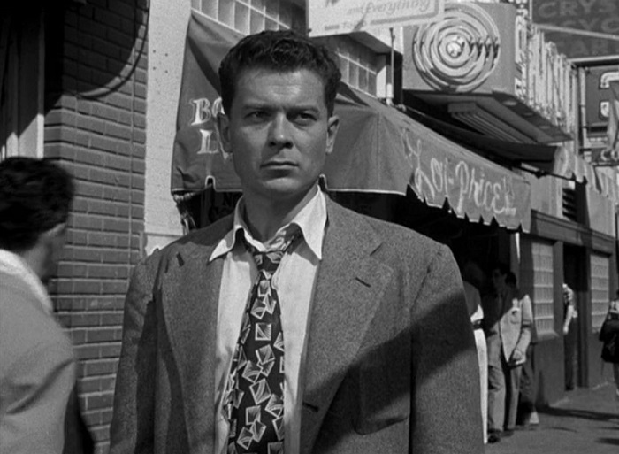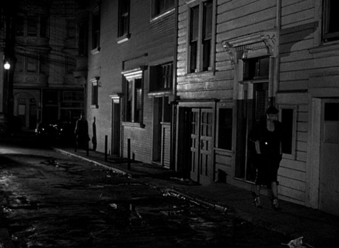 Вообще, фильм ценен тем, что почти половина его показывает нам действие маньяка именно с его стороны - прием и сейчас нечастый, а тогда тем более. Более того - именно Миллер здесь это типичный для нуара "человек на дне" - отчаявшийся, обозленный, брошенный в тяжелые обстоятельства, противостоящий всему миру. Как типичный герой нуара, он бесцельно бродит по равнодушным к нему ночным улицам, обманывается в людях, плачет в одиночестве дома, бегает по улицам города, символизирующим собой урбанизированный лабиринт его сбивчивого сознания (серьезно, только не говорите, что самые кривые улицы Лос-Анджелеса оператор выбрал случайно!). Повторяю, что только его по-настоящему жалко во всем фильме. Ни одна женщина не вызывает никакого сочувствия, даже довольно обыкновенная пианистка - и это несмотря на то, что фильм посвящен вроде как защите женщин. Честно говоря, даже половых маньяков было жалко больше, особенно когда в полицейском участке не придумали ничего умнее, чем использовать этих, по сути, больных людей как повод для плоских шуточек.