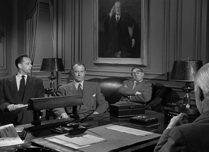 Кстати о режиме. Так как Дмитрыку надо было доказать свою лояльность, то требовалось пригласить в фильм какого-нибудь именитого противника красной угрозы. Роль детектива сыграл Адольф Менжу, один из самых воинственных антикоммунистов в Голливуде, который сам не раз участвовал в травле неугодных. Провокаций обе стороны не устраивали, но оторвались на нем в фильме хорошо. Адольф Менжу, в кино всегда изображавший красавца-джентльмена с аристократическими манерами, преобразился в обычного пожилого детектива в поношенном пальто и в стоптанных ботинках. Да еще и прозрачным именем Фрэнк Кафка - и сами думайте, на что намек. Отыграл, надо отдать ему должное, блестяще - как прожил, всеми эпизодами затмевал Артура Франца на пять.
