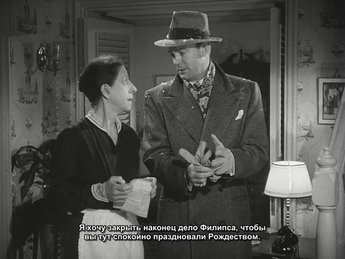 А так - получился простой фильм категории Б, почти без нуарных кадров, если не считать нескольких ночных сцен - но они в основном мелодрамные, про любоффь. Хотя надо отдать должное - в жанре "мистери муви" фильм смотрится получше, потому что интрига действительно завершилась довольно неожиданным образом. Хотя последующие сопли про то, что так бывает - хорошие люди убивают плохих, меня не впечатлили. Все равно нам так и не объяснили, что такого плохого было в этом убитом, и что такого хорошего в убийце - сценарий тупо поленился это сделать. Да и вообще - деталей тут кот наплакал, глубины ни у сюжета, ни у персонажей - ни малейшей, а со многими второстепенными - вообще провал полный, они какие-то едва прописанные шаблоны. Но чего вы хотите от милого мелодраматического нуара, который снимался на Рождество под праздничное настроение! Да, серьезно, ЭТО вышло на Рождество - О'Кифф лично настоял.